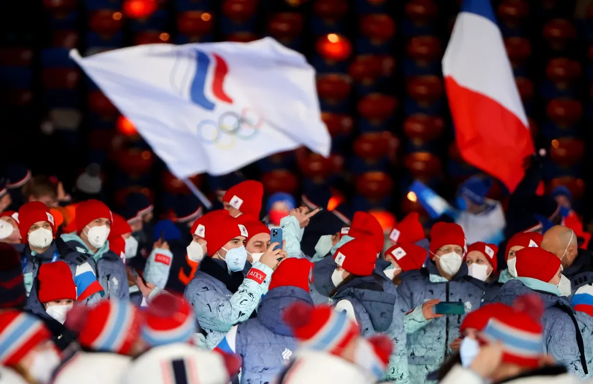 Команда ОКР во время закрытия Олимпиады-2022. Фото: Валерий Шарифулин / ТАСС