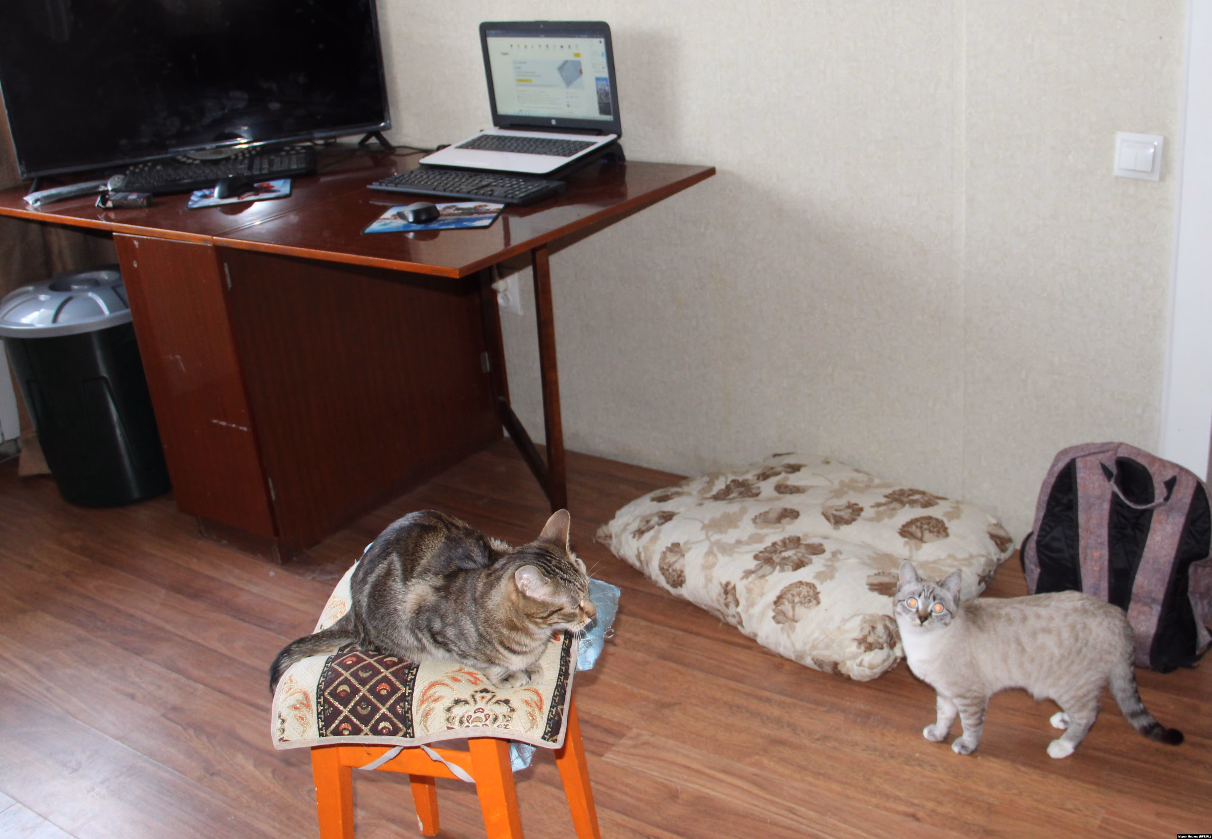 Люди они непьющие, аккуратные, моют пол через день, по графику дежурств. Разве что кошек завели, тоже бывших бездомных: у Серика – Кроха, у Андрея – Симба, есть еще одна – Мелкая, ее оставил товарищ из того же ПНИ, которому запретили держать животных в общежитии. В клетке – пара крыс, в аквариуме – две красноухие черепахи.