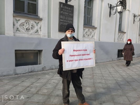 Активист Алексей Коптелов проводил пикет против войны с Украиной. Дмитрий Лень, второй задержанный, держал в руках плакат с надписью «Маразм в суде Навального крепчает, и цирк при этом отдыхает». Их доставили в отдел полиции «Китай-город».