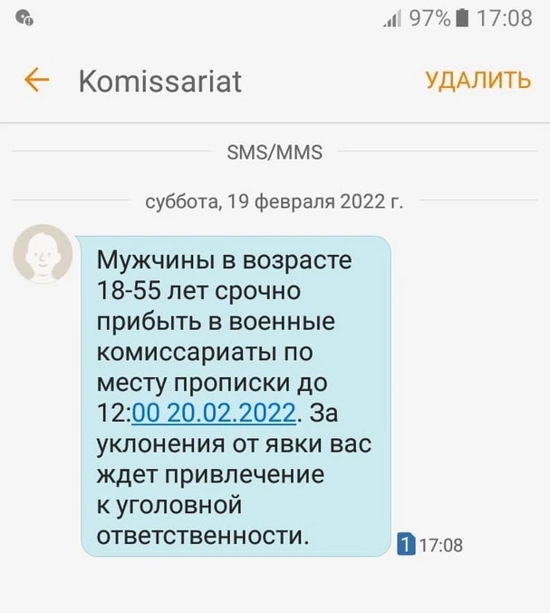 После начала мобилизации одной из главных тем в соцсетях стали действия военной комендатуры. В прошлую субботу, 19 февраля, на странице «Типичный Донецк» во «ВКонтакте» (539 тысяч подписчиков) и «ЧП Донецк» появились скриншоты СМС-сообщений, в которых мужчин 18–55 лет призывали прийти 20.02.2022 в 12:00 в военкоматы по месту прописки. К другому посту этого же дня была прикреплена фотография повесток, которые якобы начали разносить по домам.