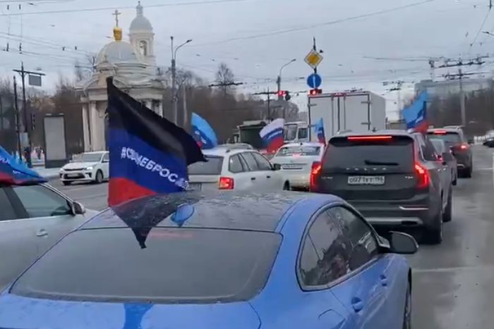 В Петербурге 23 февраля прошел автопробег в поддержку Донбасса. По центру города проехали несколько десятков машин с российскими флагами с надписью #своихнебросаем. Об этом со ссылкой на соцсети сообщили телеканал «78» и «Пятый канал».
