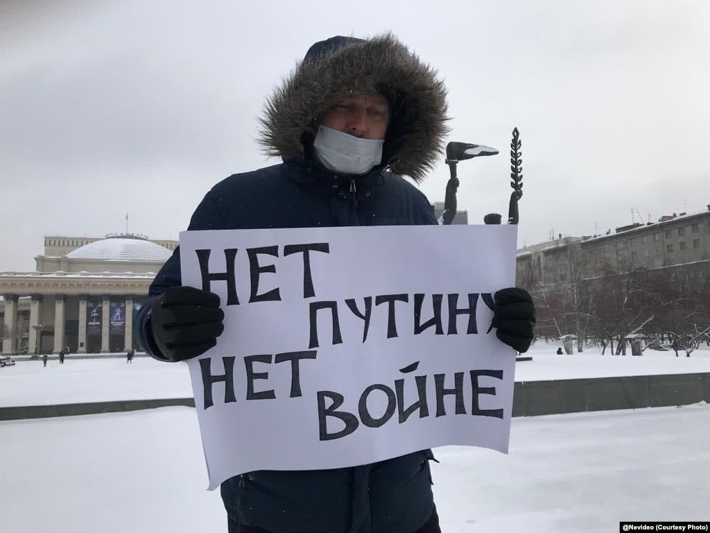 - Ранее жители Новосибирска вышли в центр города на одиночные пикеты против признания независимости "ЛНР" и "ДНР".