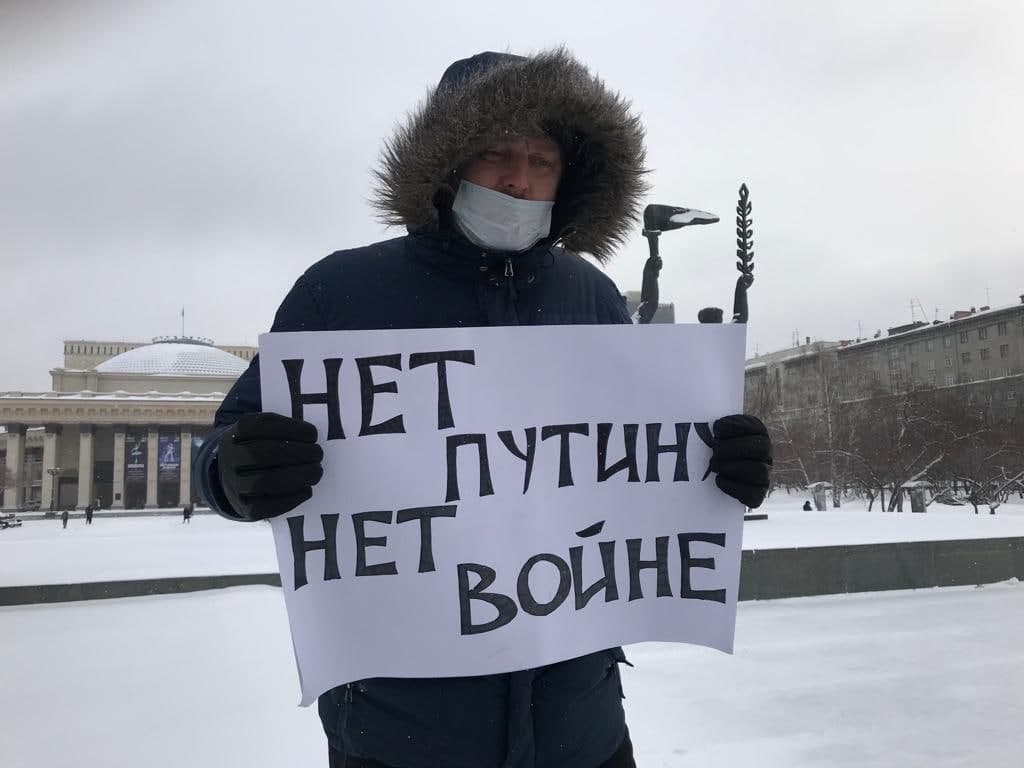 Жители Новосибирска 23 февраля вышли на пикеты против войны с Украиной и против признания независимости "ЛНР" и "ДНР". Пикетчики считают, что "военщина Путина" приведет к тому, что жизнь в российских регионах "подорожает".