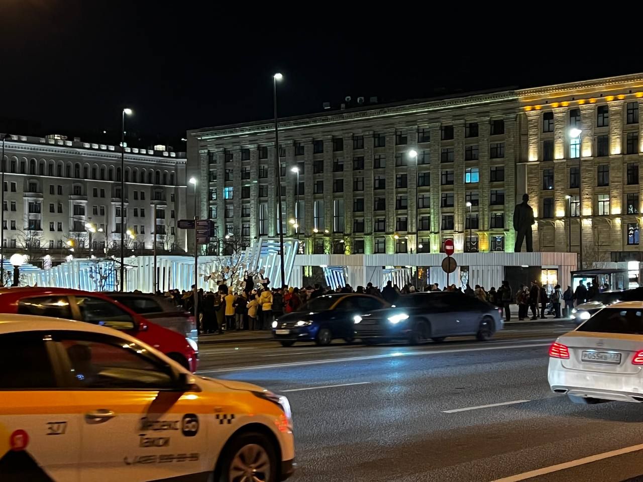 В Москве продолжается антивоенная акция на Пушкинской площади. Вот как полицейские задерживают ее участников