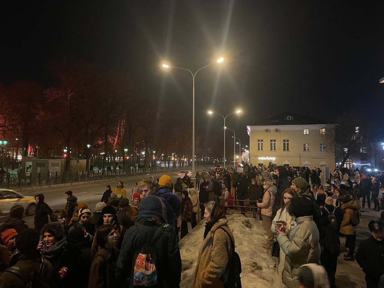 Напротив памятника Пушкину в Москве собрались около 300-400 человек, сообщает корреспондент «Медузы». Люди кричат «Нет войне!» У здания «Известий» проходят задержания. Полицейские запрещают людям сидеть на лавочках.