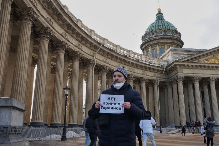 Ранее «Бумага» писала, что в Петербурге был задержан активист «Молодежного Яблока» Никита Чирков, который встал у станции метро «Гостиный двор» с плакатом «Нет войне». Его доставили в 28-й отдел полиции.