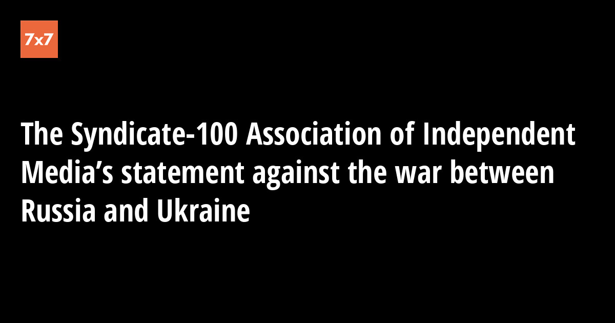 The Syndicate-100 Community of Independent Russian Media has released a statement due to the beginning of Russia's war against Ukraine. The 7x7 Online Newspaper publishes the statement’s full text.