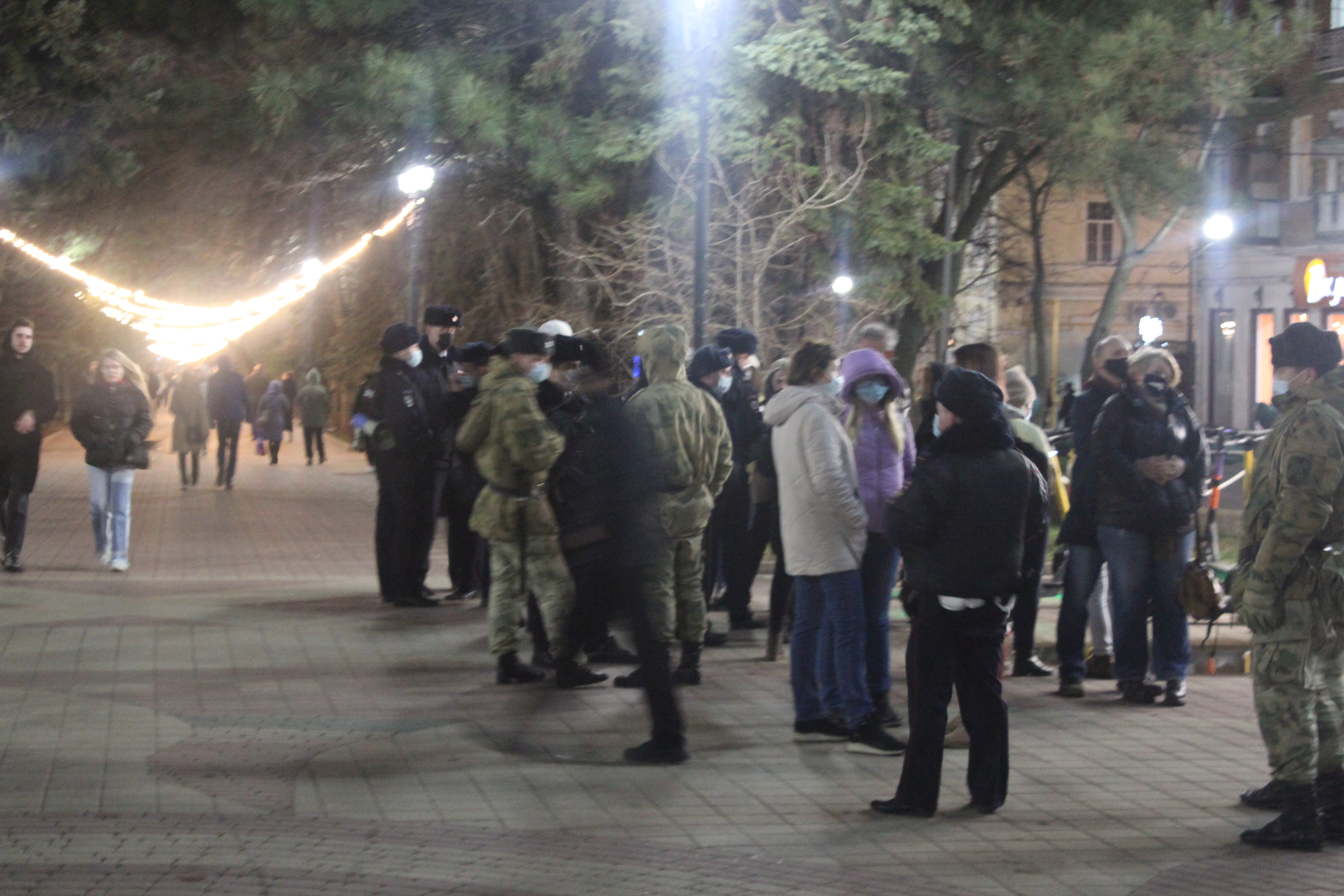В 7 вечера 24 февраля люди собрались на площади у Публичной библиотеки – привычном для ростовчан месте начала митингов и шествий. Год назад здесь же протестовали против преследования российского оппозиционного политика Алексея Навального.