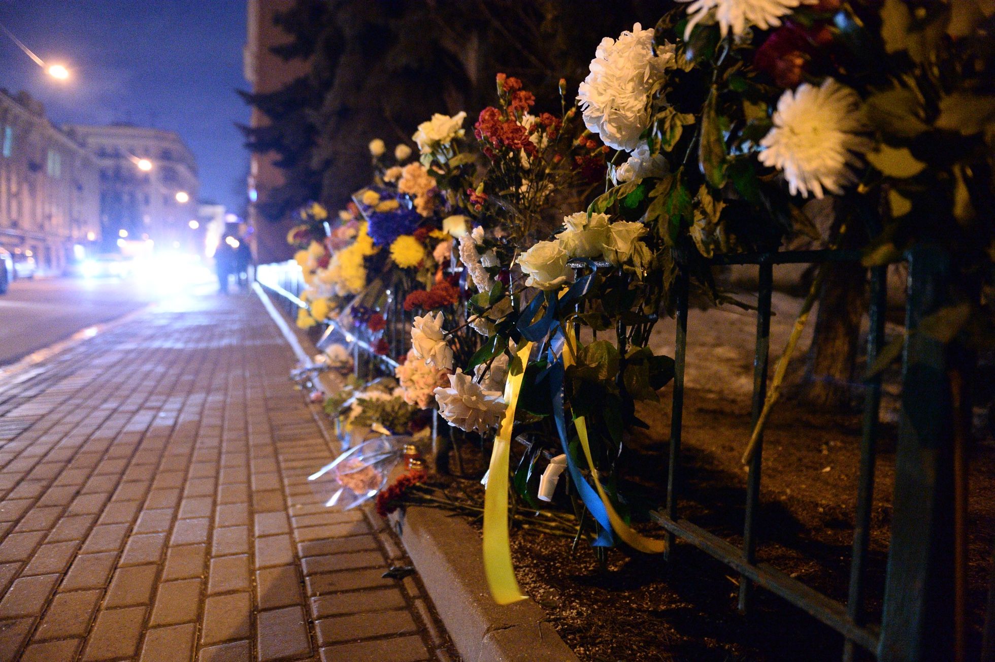 На этом снимке — обломки самолета, врезавшегося в дом в Киеве в ночь на 25 февраля 2022 года. Предрассветные взрывы в Киеве положили начало второму дню вторжения России в Украину.