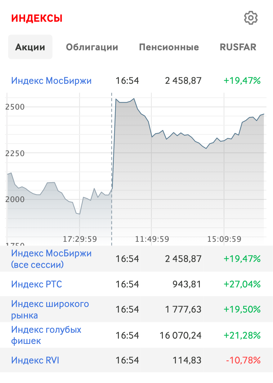 Тем временем на Московской бирже основные индексы демонстрируют рост после исторического обвала вчера.