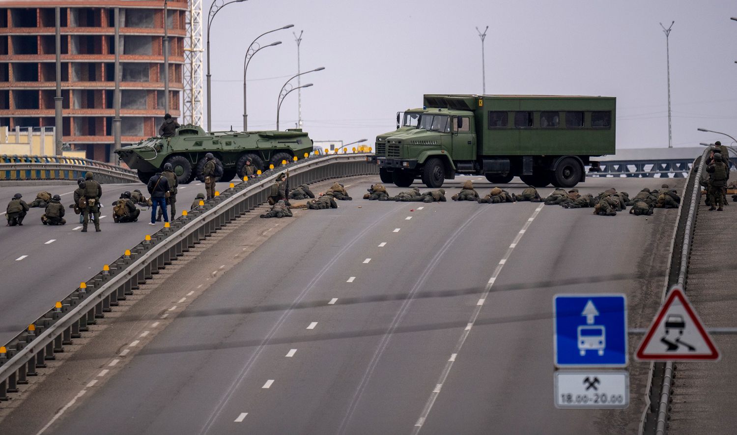 Emilio Morenatti / AP / Scanpix / LETA Украинская армия занимает позиции на улицах Киева. 25 февраля 2022 года