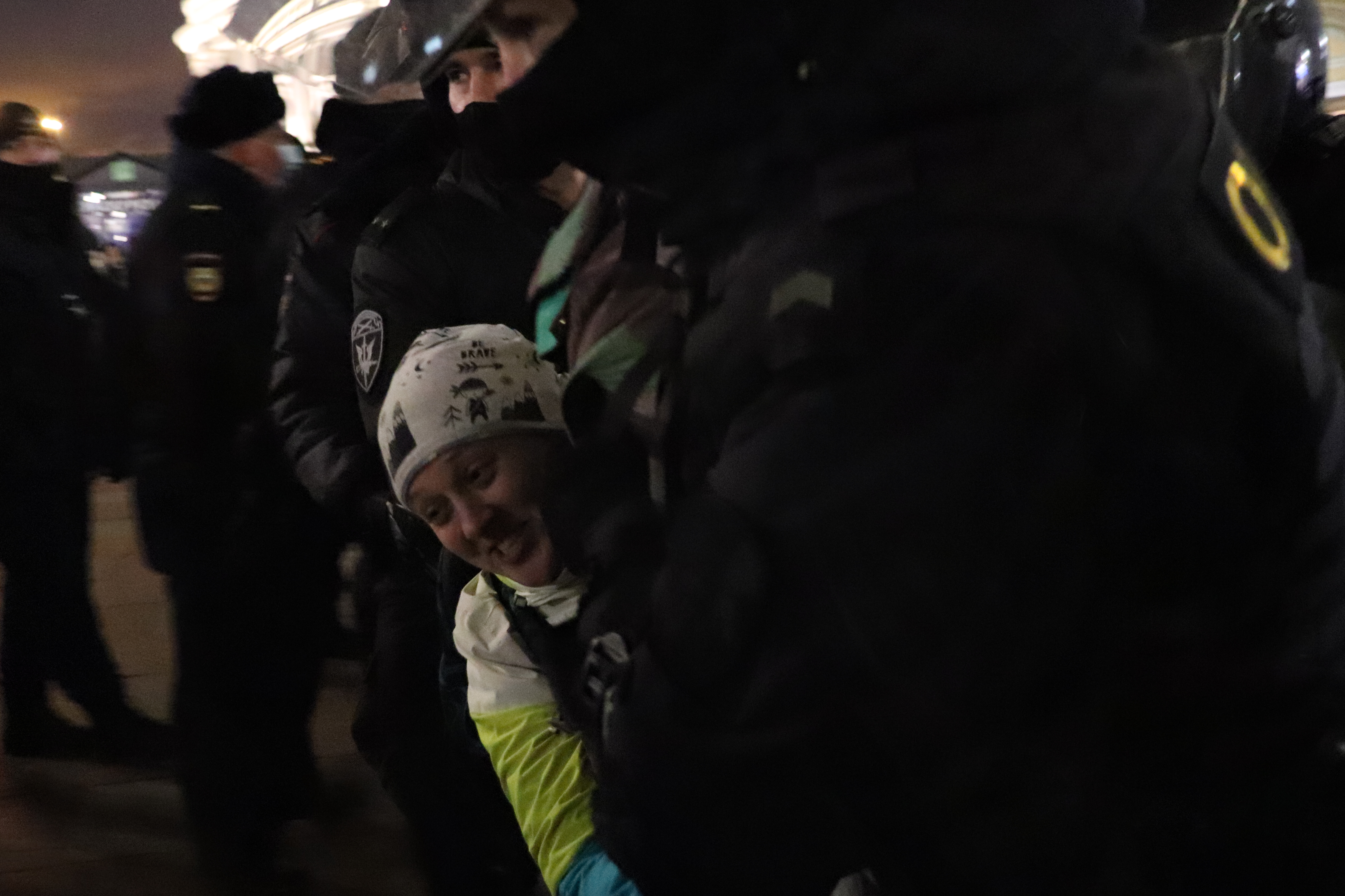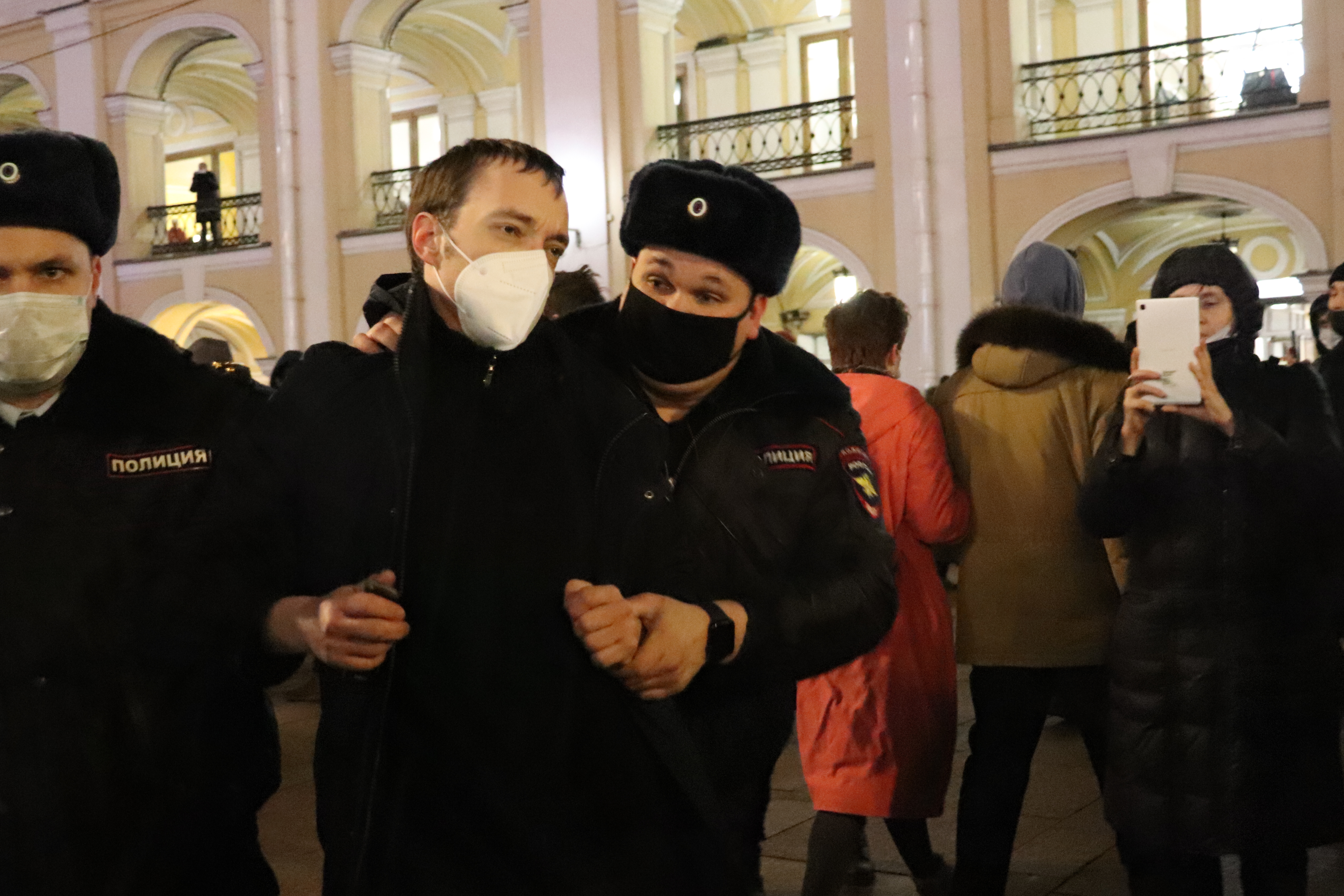 Задержания на Гостином дворе становились жестче: полиция выхватывала просто стоящих в толпе людей, валила на землю тех, кто оказывал малейшее сопротивление.