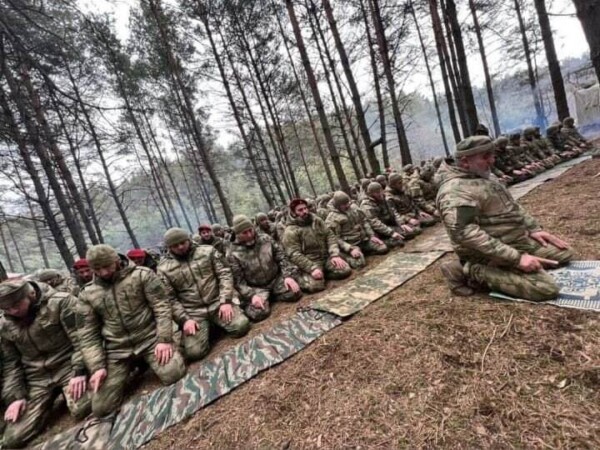 Как пишет РИА «Новости», помощник Кадырова (имя не уточняется) опубликовал фото и видео, на которых бойцы батальона Росгвардии «Юг» совершают коллективный намаз в лесу. Mash со ссылкой на сообщения подписчиков утверждает, что они находились под Киевом.