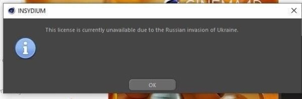 https://tjournal.ru/post/545345Ещё утром 24 февраля в соцсетях появились жалобы на работу Insydium — английская компания, выпускающая плагины для нескольких графических программ, закрыла доступ к своим продуктам для российских пользователей. Причиной блокировки лицензий указано: «в связи с вторжением России в Украину».