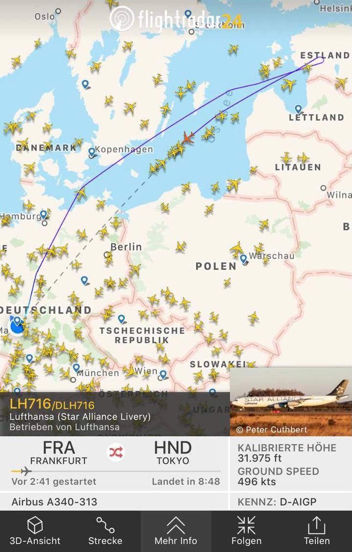 Немецкие гражданские самолеты, выполнявшие транссибирские перелеты в Азию, разворачиваются над Россией и возвращаются в Европу. Это следует из текущих данных сервиса FlightRadar, отслеживающего авиационные рейсы. В частности, на карте видны три рейса Lufthansa и DHL, направлявшиеся в Сеул и Токио, которые развернулись в аэропорты вылета (Лейпциг, Франкфурт и Мюнхен), находясь над северными областями РФ (в районе Великого Устюга и Соликамска) или на странами Балтии.