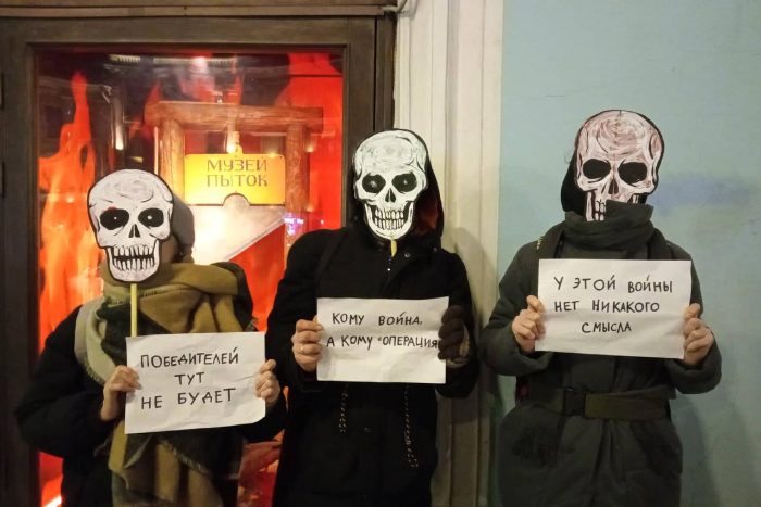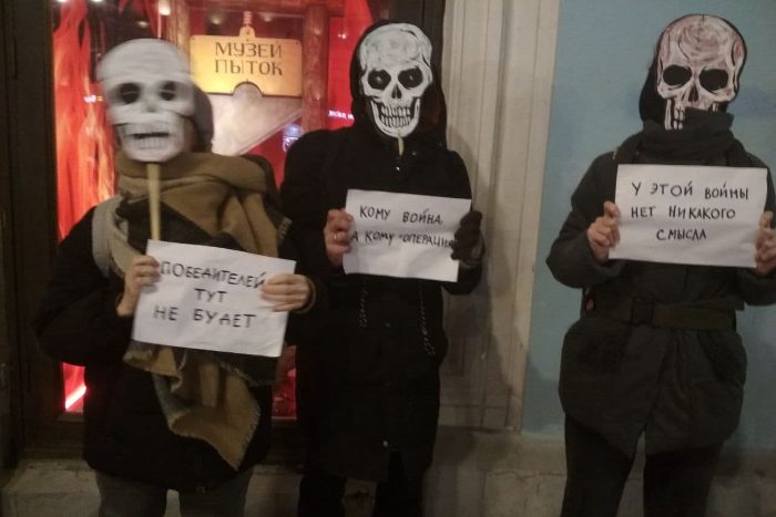В день начала войны России с Украиной, 24 февраля, петербургские активисты из объединения «Партия мертвых» также провели пикеты в Петербурге в масках скелетов. Они стояли с плакатами «Победителей тут не будет», «Кому война, а кому операция», «У этой войны нет никакого смысла».