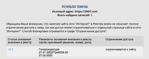 Сайт заблокирован Роскомнадзором по решению Генпрокуратуры. TJ подтвердил эту информацию с помощью сервиса ведомства для проверки ограничения доступа. К моменту публикации этой заметки сайт «Ищи для своих» уже не открывается.