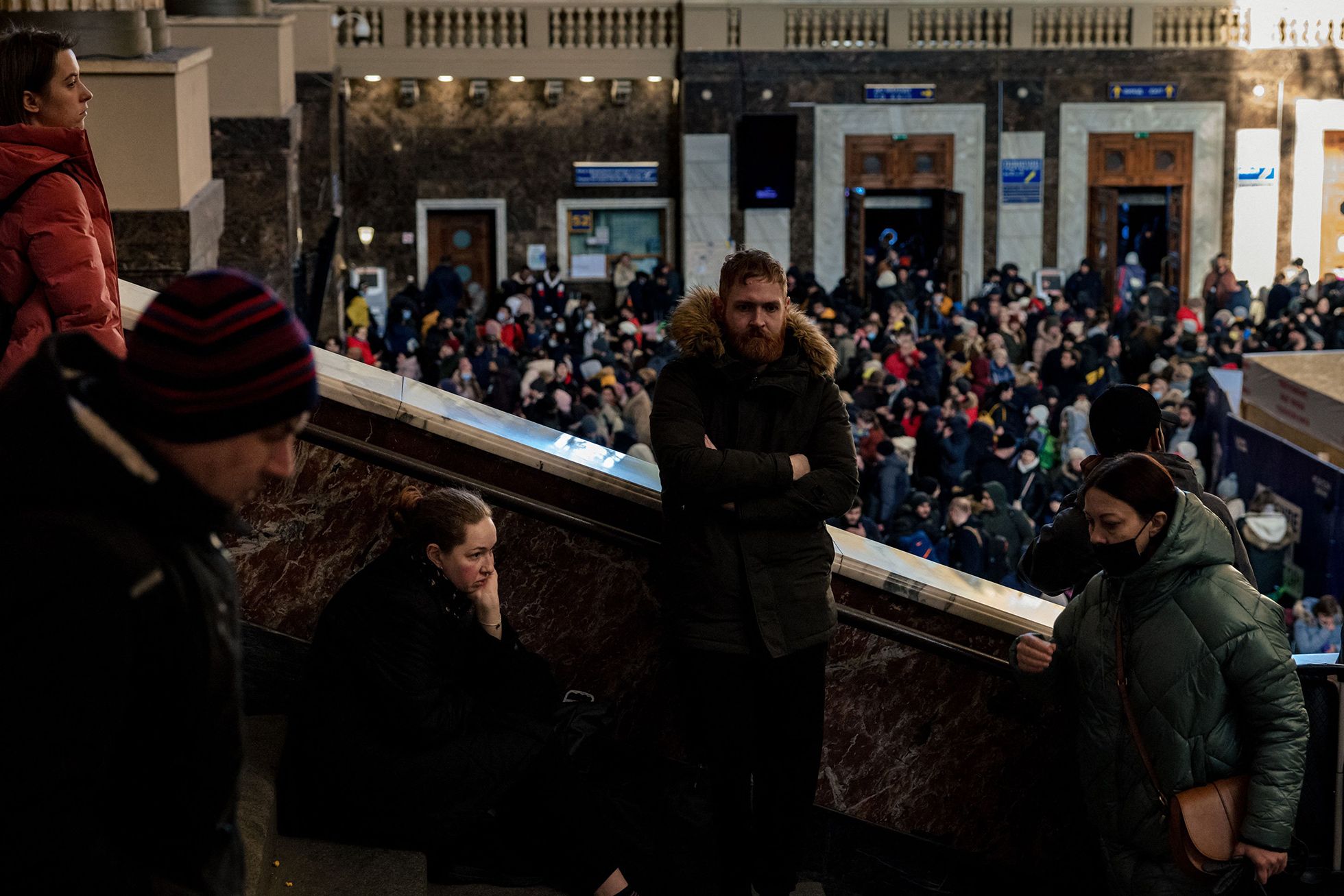 Dimitar Dilkoff / AFP / Scanpix / LETA Люди ждут посадки в эвакуационный поезд на центральном вокзале Киева, 28 февраля 2022 года