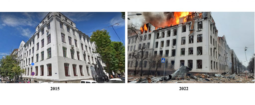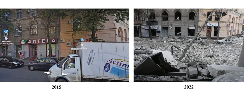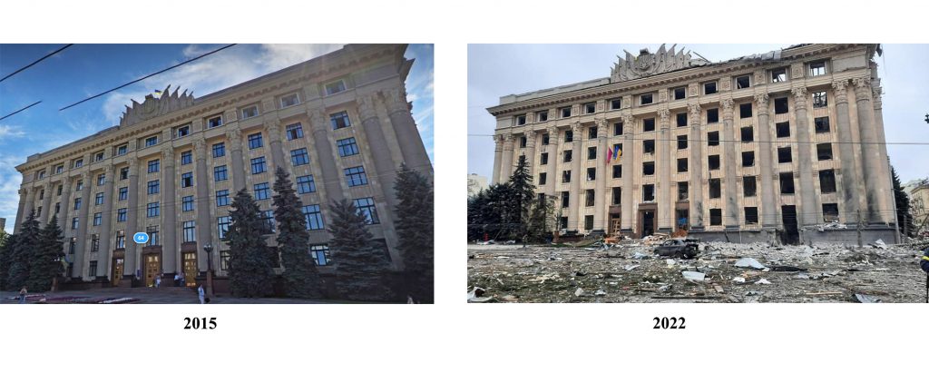 «Холод» сравнил фотографии некоторых украинских зданий и сооружений с тем, как они выглядят после вторжения российских войск на территорию страны.
