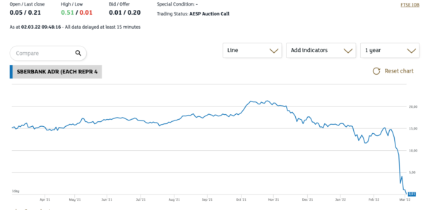 Цена расписок Сбера на Лондонской бирже опустилась до одного цента