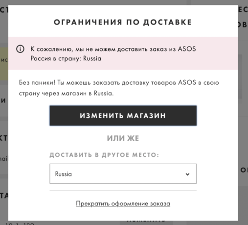 Онлайн-магазин ASOS прекратил доставку в Россию. Заказать вещи в страну нельзя, заметили редакторы TJ.