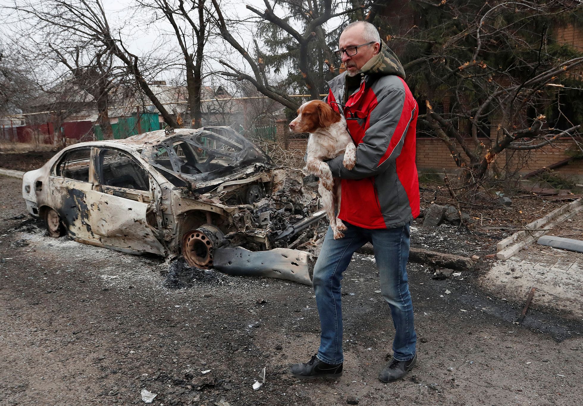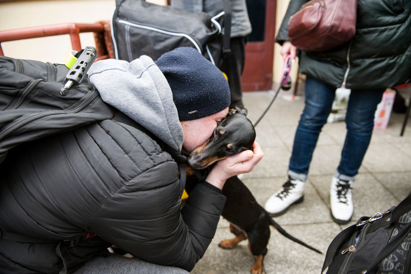 Evgeniy Maloletka / AP / Scanpix / LETA Житель Мариуполя с собакой на руках после обстрела 24 февраля 2022 годаArmin Durgut / PIXSELL / Scanpix / LETA Собака и ее хозяйка отдыхают в в приюте для украинских беженцев в Перемышле, Польша 28 февраля 2022 годаMarcus Yam / Los Angeles Times / Getty Images Украинский волонтер помогает женщине и ее собаке перебраться через реку Ирпень. Мост был разрушен, чтобы замедлить продвижение российской техники. 1 марта 2022 годаAlexander Ermochenko / Reuters / Scanpix / LETA Житель Донецка выносит собаку из дома, который попал под обстрел украинской стороной 28 февраля 2022 годаPierre Crom / Getty Images Жительница Киева Наталья, ее кошка и четыре собаки ожидают поезд для эвакуации на запад Украины 1 марта 2022 годаKai Pfaffenbach / Reuters / Scanpix / LETA Украинка с двумя собаками на границе Украины и Польши 1 марта, 2022 годMarcus Yam / Los Angeles Times / Getty Images Житель Харькова пытается успокоить кота. Во время обстрела он и еще тысячи харьковчан прячутся в метро. 24 февраля, 2022 годаJana Cavojska / Sopa / LightRocket / Getty Images Беженка с собакой на руках приехала на вокзал во Львове, чтобы покинуть Украину. 1 марта, 2022 годAttila Kisbenedek / AFP / Scanpix / LETA Венгерские полицейские держат собаку, которая приехала на границу вместе с беженцами. 1 марта 2022 годаVadim Ghirda / AP / Scanpix / LETA Пара и их собаки сидят на подземной парковке отеля в Киеве, которую используют как бомбоубежище. 27 февраля 2022 годаMikhail Palinchak / Reuters / Scanpix / LETA Вооруженный житель Киева несет кошку в переноске и рыбку в аквариуме из попавшего под обстрел жилого дома. 26 февраля 2022 годаPierre Crom / Getty Images 16-летний Лео и его собака второй день спят на станции метро в Киеве вместе с семьей и другими горожанами. 25 февраля 2022 годаEvgeniy Maloletka / AP / Scanpix / LETA Женщина с кошкой в укрытии во время российского обстрела в Мариуполе. 24 февраля 2022 года