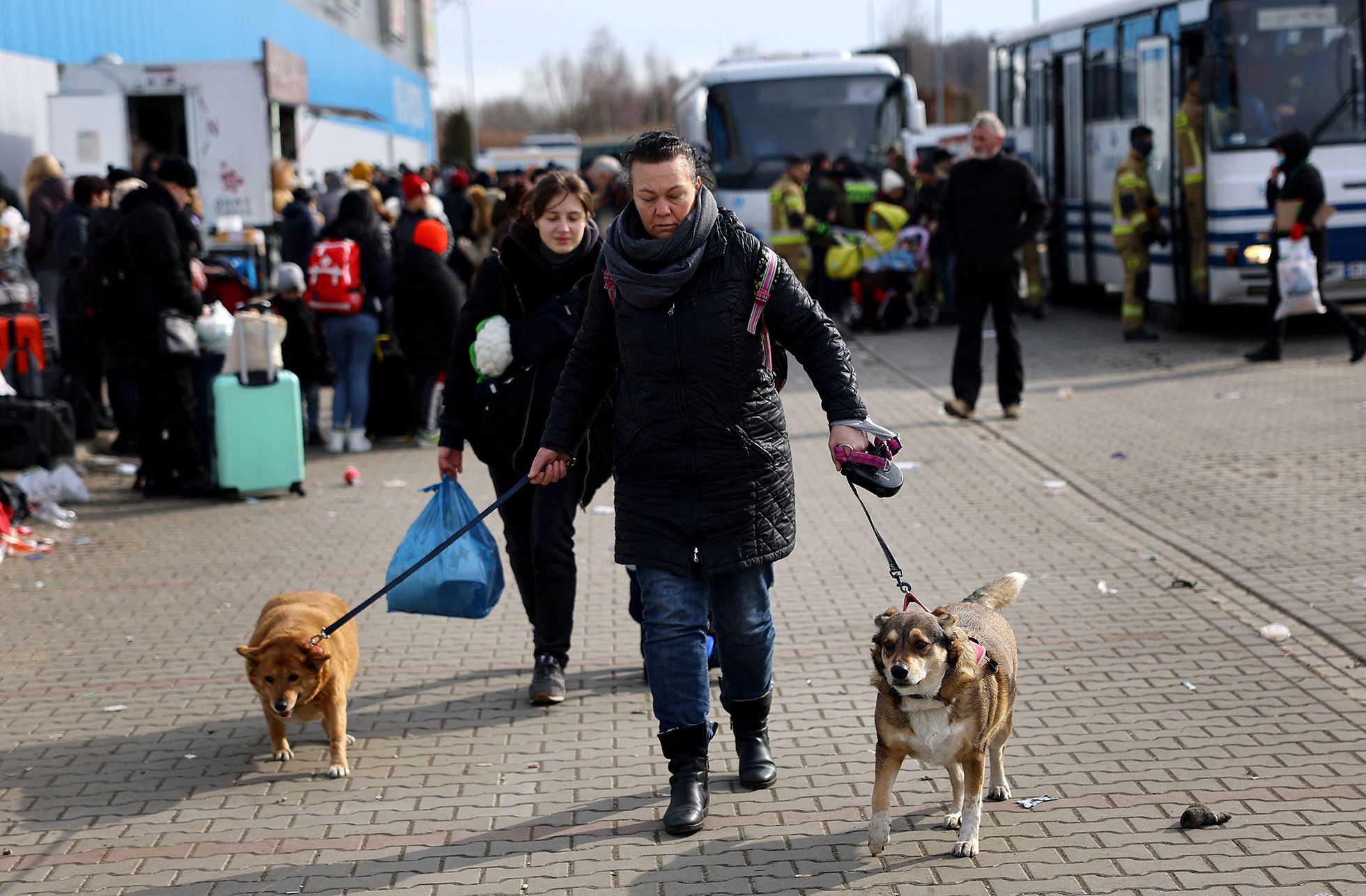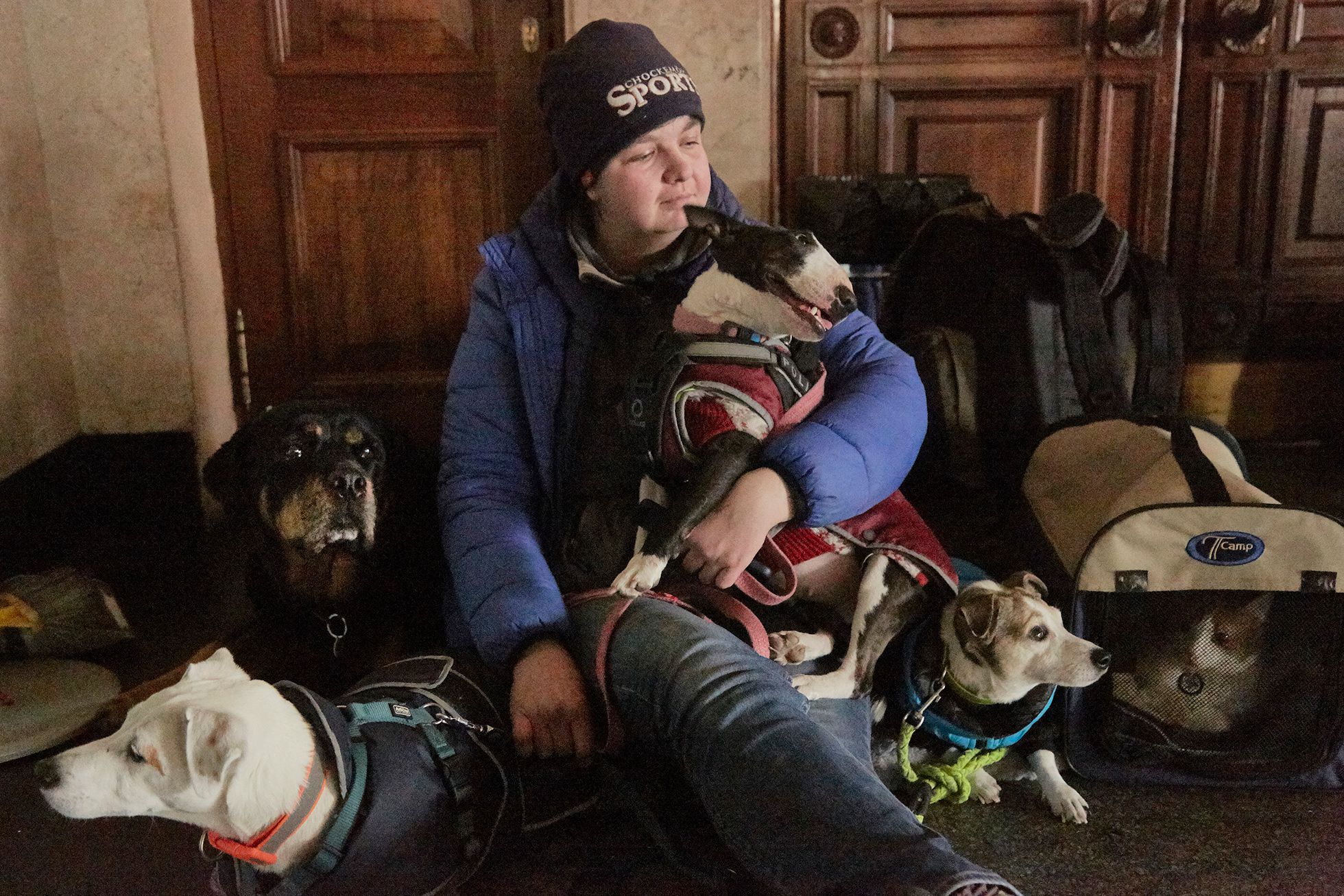 По данным ООН, за шесть дней войны Украину уже покинуло 836 тысяч беженцев. Вторжение заставляет людей покидать дома, прятаться в бомбоубежищах и уезжать далеко от дома. Вместе с ними эти испытания проходят их домашние животные. «Медуза» публикует фотографии людей, которые спасаются вместе с питомцами.
