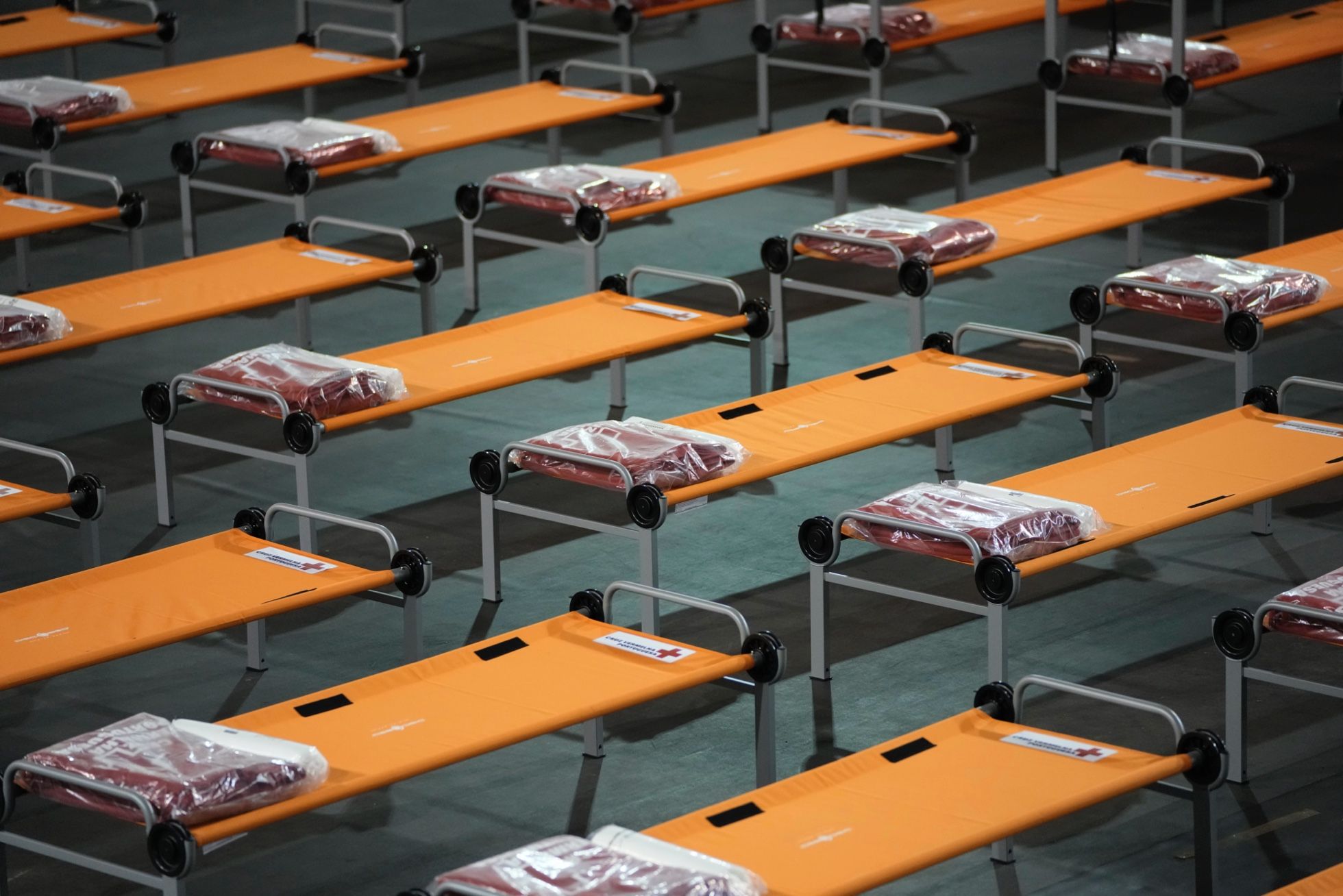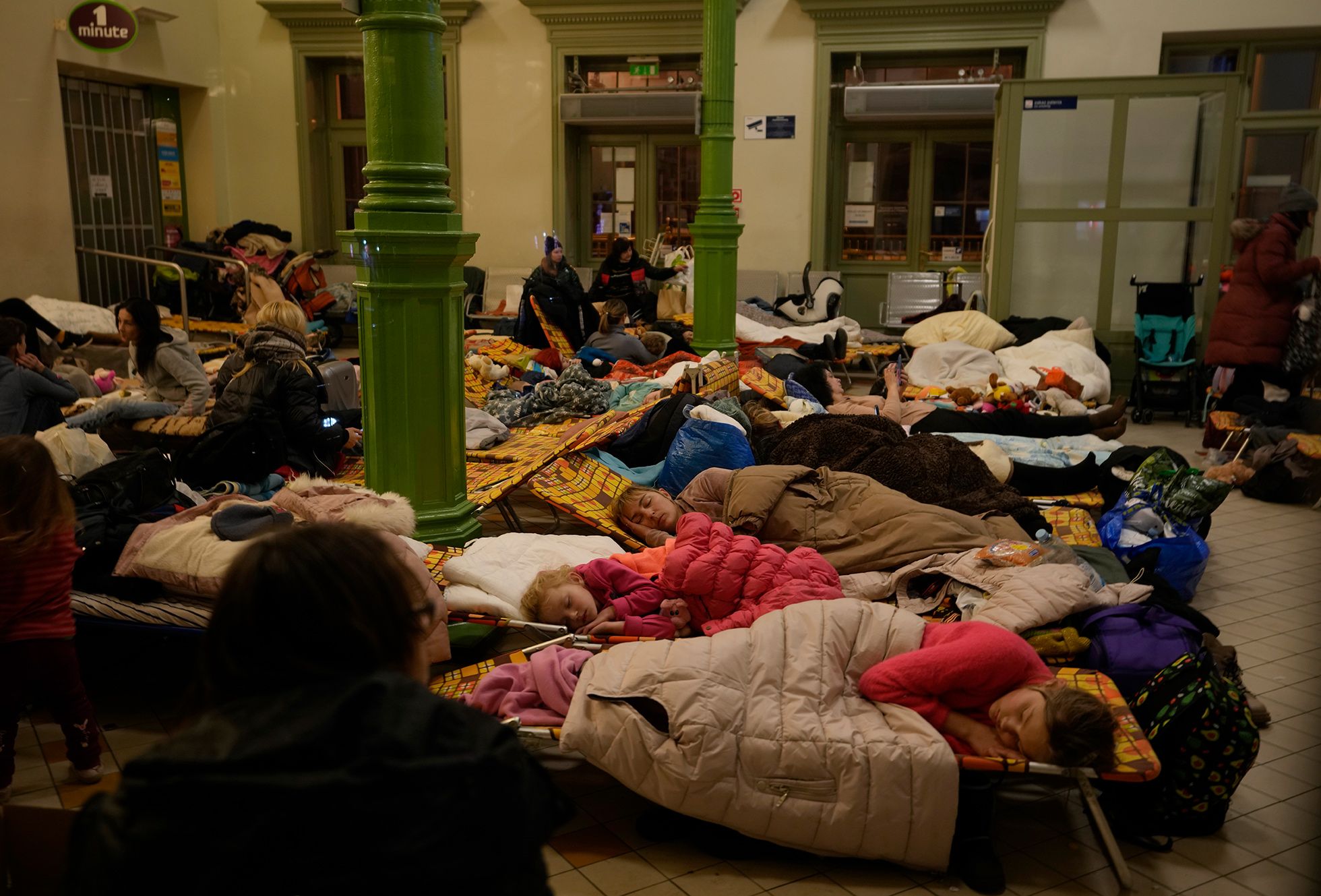На этом снимке показан спортивный зал, переоборудованный для временного размещения украинских беженцев. По данным ООН, за время войны из Украины уехали более одного миллиона человек.