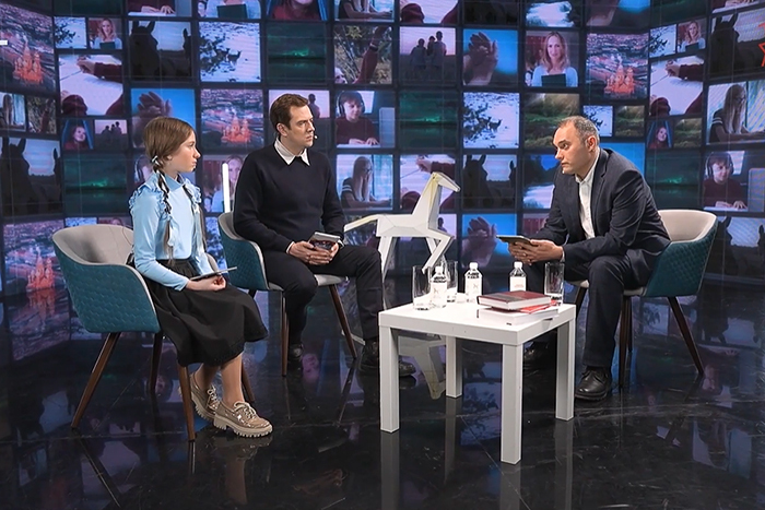 Рассказ шел в формате ответов на «детские» вопросы: всё время школьница София Хоменко расспрашивала о причинах происходящего в Украине ведущего программы «Вести», члена Центрального штаба ОНФ Дениса Полунчукова. Они смотрели видеосюжеты, а также беседовали с автором учебных пособий Петром Ишковым.