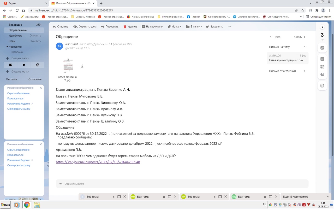 Иначе как объяснить тот факт, что на мой вопрос от 14 февраля 2022 г. ответ мне был направлен еще 03 февраля 2022 г.?