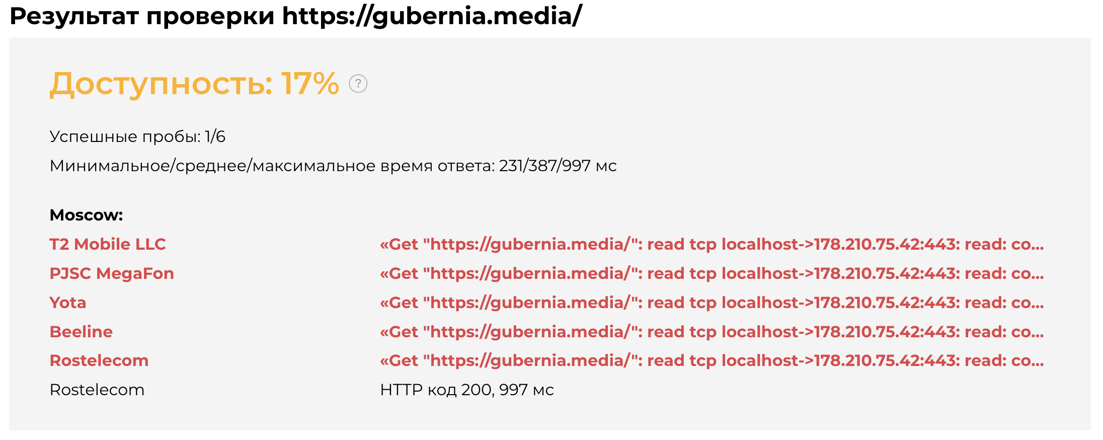 На сайте Роскомнадзора нет информации о блокировке издания.