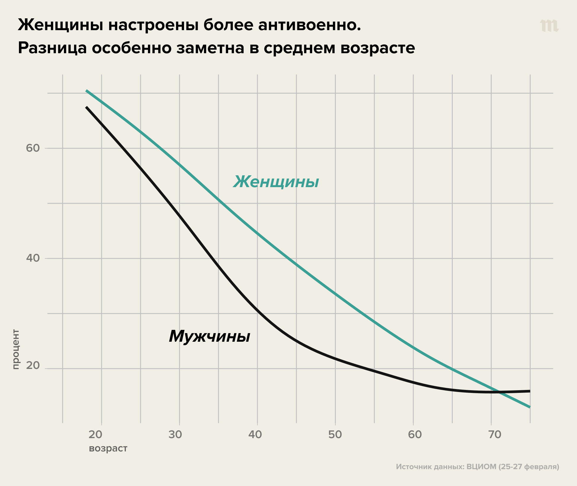 График 3. Среди женщин поддержка «военной операции» ниже, чем среди мужчин