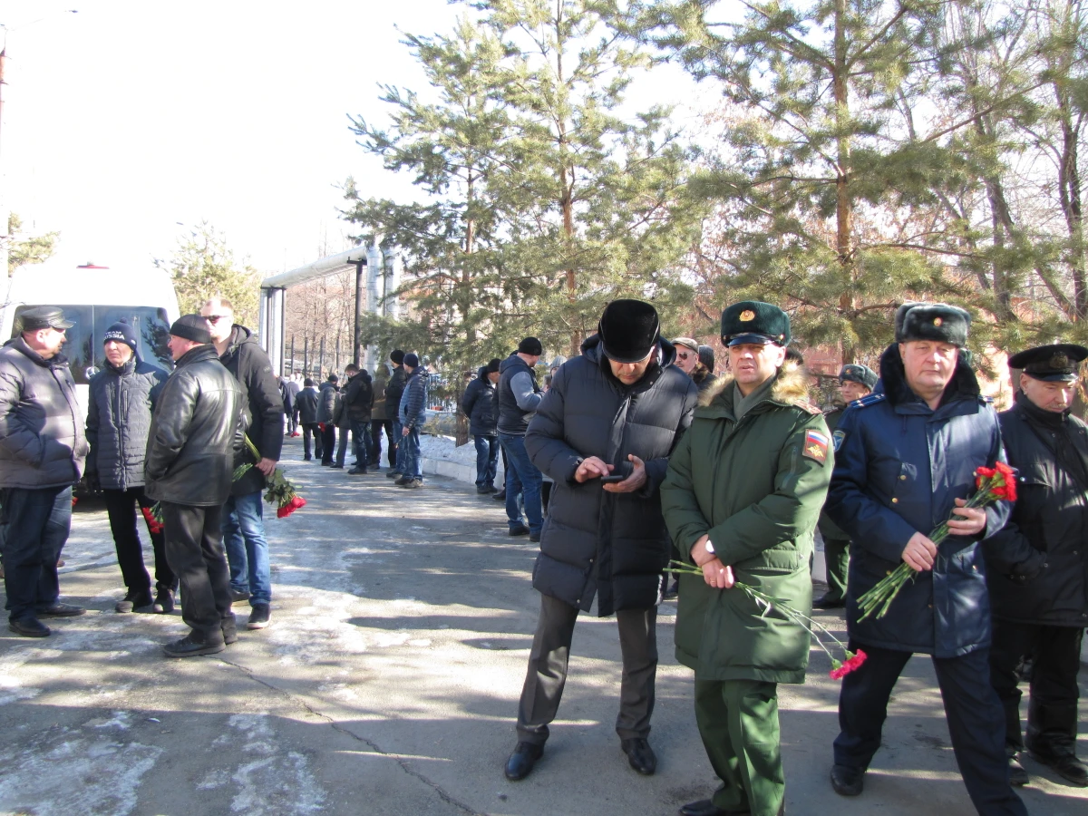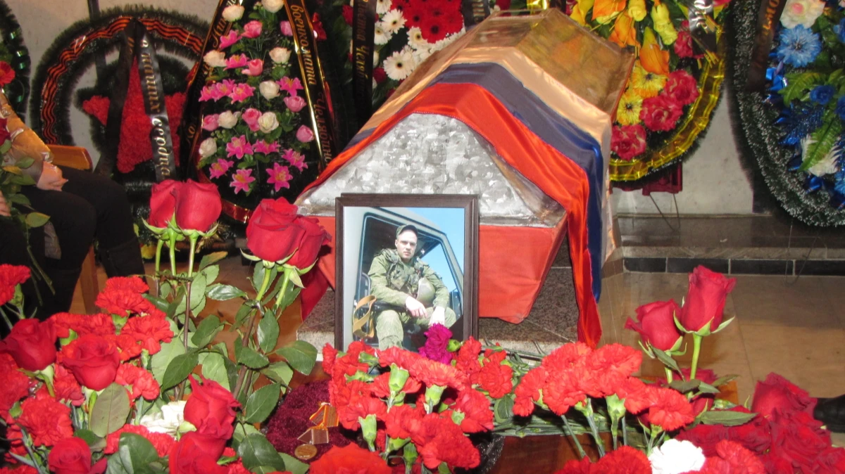 У входа в морг — толпа, человек четыреста. Среди них — с десяток журналистов и много людей в военной форме. Траурный зал автодорожной больницы плотно забит народом. По центру — закрытый гроб на фоне больших пышных венков, у подножия — портрет погибшего и подушечка с наградами. Как мне удается выяснить у присутствующих здесь представителей совета ветеранов, это была не первая в его жизни командировка в горячую точку.