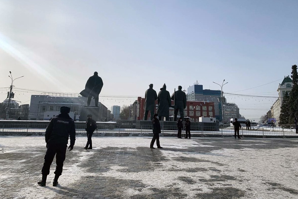 16:06 Монумент на площади Ленина в Новосибирске опять оцепили.