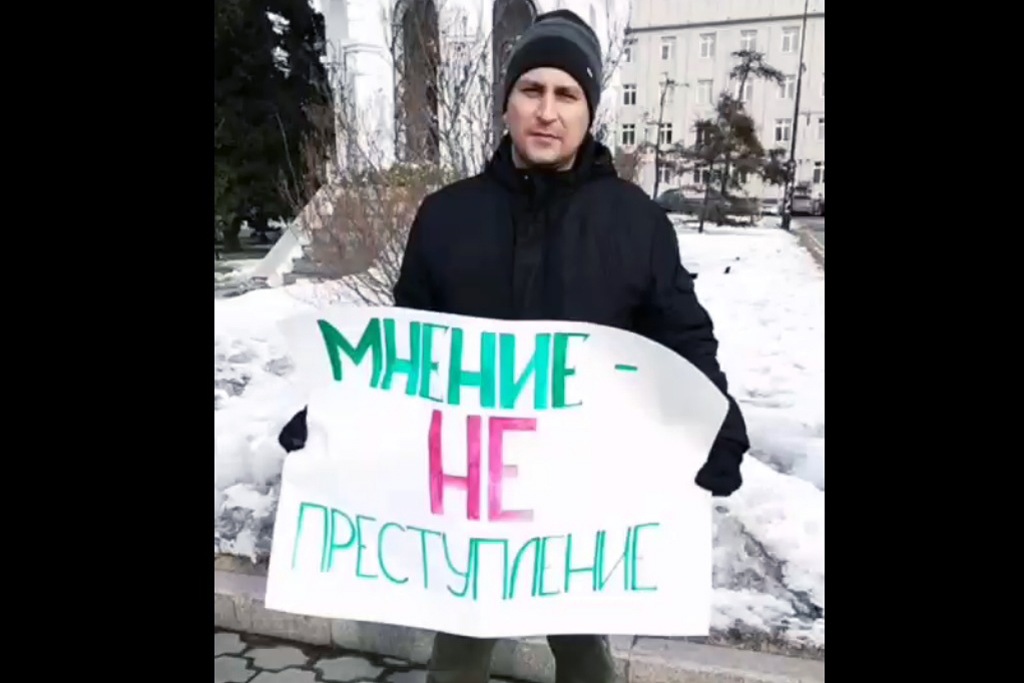 14:56 В Иркутске задержали человека с плакатом: «Мнение — не преступление».