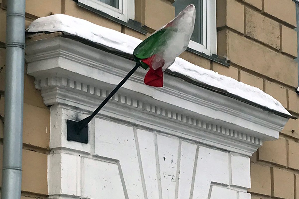 11:29 Флаг Белоруссии замерз на отделении посольства Белоруссии в Новосибирске, сообщил Тайге. инфо читатель.