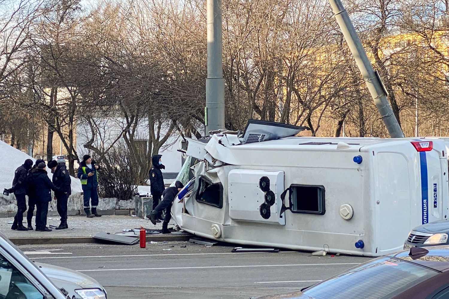 Ксения Семеновская / ТАСС В Москве один из автозаков с задержанными на акции протеста попал в ДТП и перевернулся. Пострадали девять человек, трое из них госпитализированы