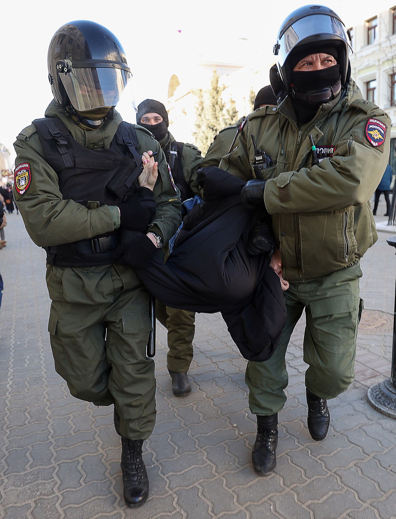 11 дней назад Россия вторглась в Украину. С тех пор в самой России не прекращаются протесты против войны. По подсчетам «ОВД-Инфо», на них были задержаны более 12700 человек. Задержания на акциях 6 марта стали одними из самых массовых и самых жестких с начала антивоенной кампании. В 56 городах России были задержаны около 4400 человек; некоторых задержанных избивали, хватали за волосы, обливали водой и антисептиком, применяли против них электрошокеры. «Апология протеста» зафиксировала более 30 жалоб на необоснованное применение силы и спецсредств со стороны сотрудников МВД и Росгвардии. Как выглядели улицы российских городов 6 марта — в нашей фотогалерее.
