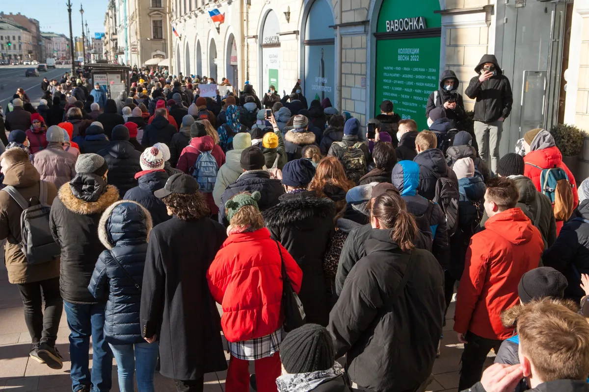 Акция противников «спецоперации» 6 марта в Петербурге резко отличалась от всех предыдущих: точное число тех, кто участвовал в ней, подсчету вообще не поддается. Поскольку понять, кто приехал в центр города специально выразить протест, а кто по своим делам, было почти невозможно. Из-за вступления 5 марта в силу закона о «фейках о российской армии» люди максимально учли возможные негативные последствия и вели себя сдержанно. Не снимали медицинских масок с лица. За исключением единичных случаев, ничего не выкрикивали и нигде не имели никаких агитационных надписей.
