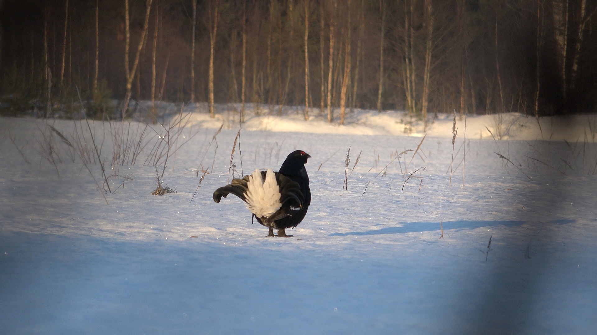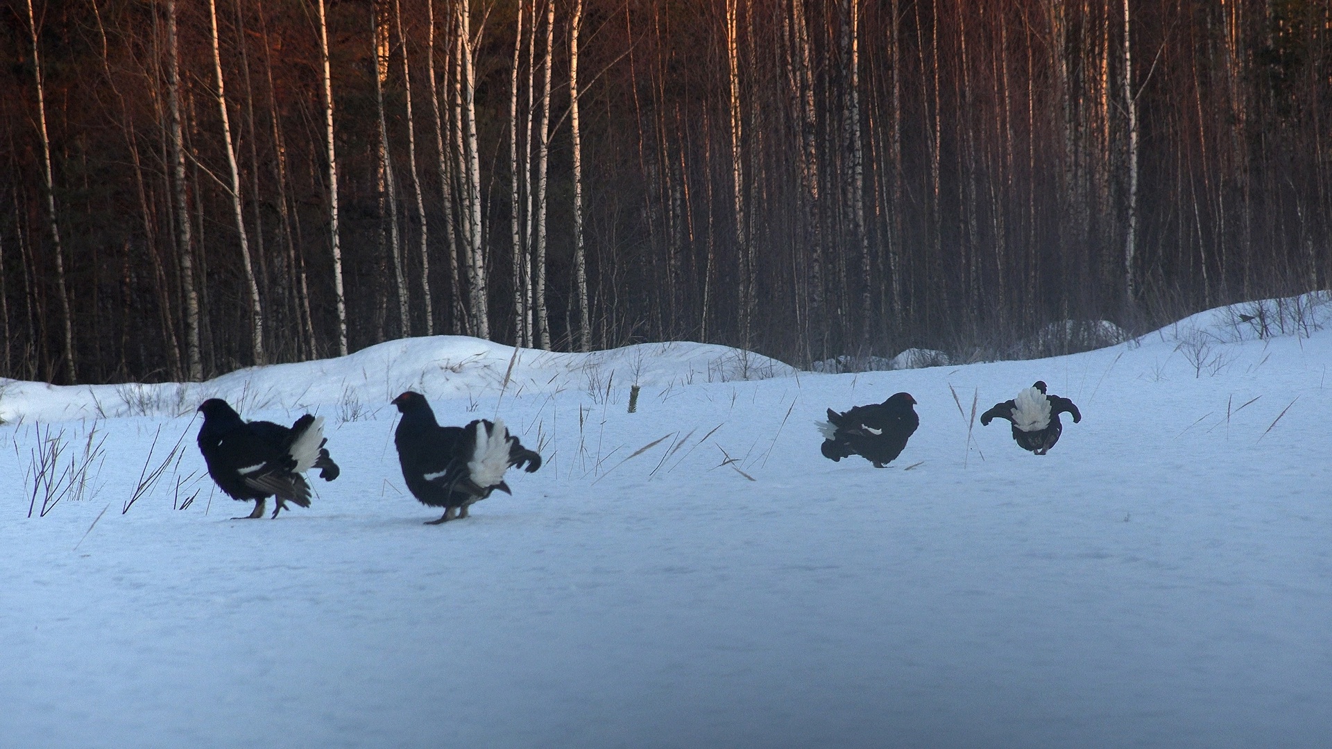 Сейчас тетеревы токуют — это особое поведение птиц в начале брачного периода. По словам Павла Глазкова, он знал, где соберутся птицы, потому что тетерева токуют в одних и тех же местах десятилетиями. А так как они очень осторожные, наблюдать за ними можно только из укрытия.