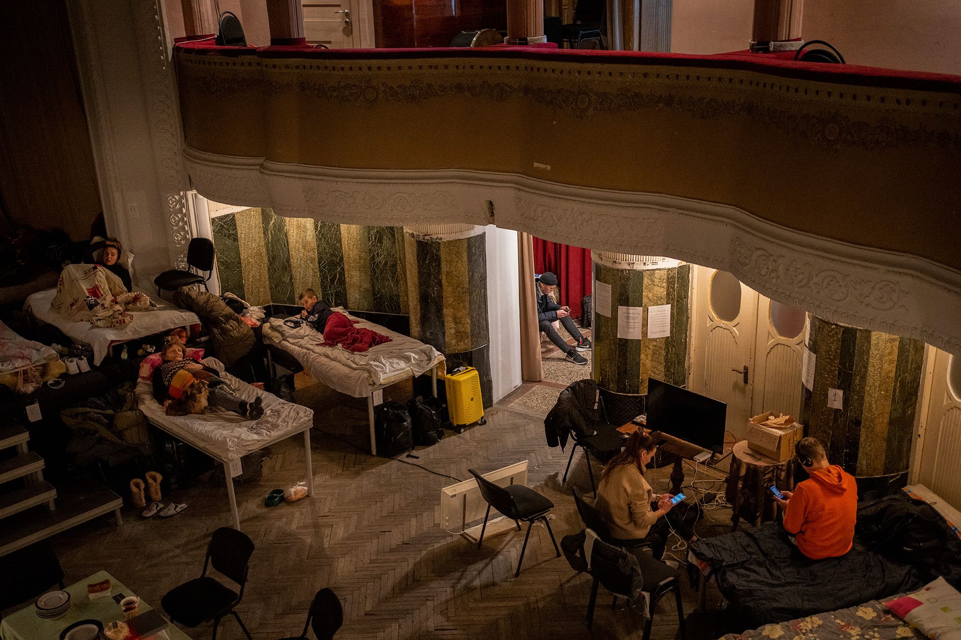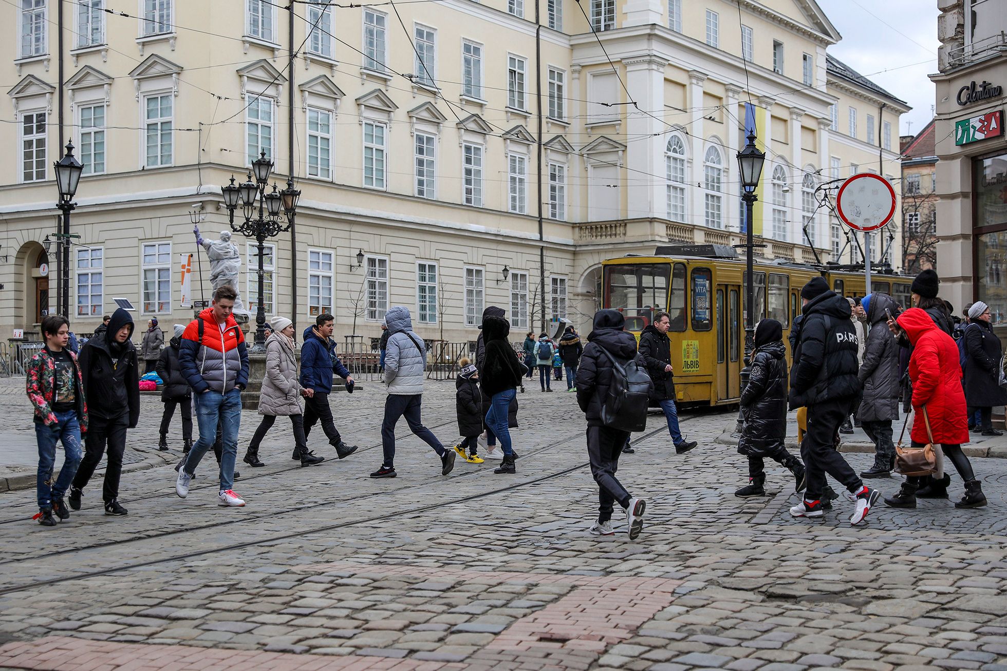 В центре Львова беженцев как будто не видно — только чаще встречаются группы туристов, нагруженных походными ковриками и одетых чуть теплее, чем нужно для украинского марта.
