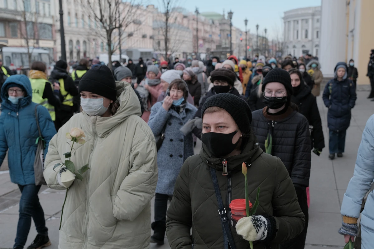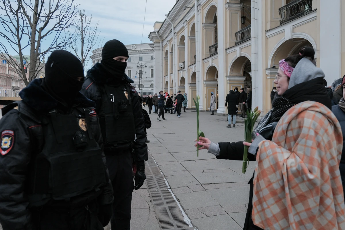 В центре Петербурга акция против военной «спецоперации» вооруженных сил России на территории Украины прошла и в праздничный день 8 марта. Задержано около 20 человек. Журналисты сообщают, что полиция не сразу стала применять силу, тем более что акция изначально позиционировалась как женский протест. У Гостиного двора активисты настойчиво раздавали женщинам цветы, однако в итоге поучаствовавших в акции петербурженок задерживали прямо с букетами.