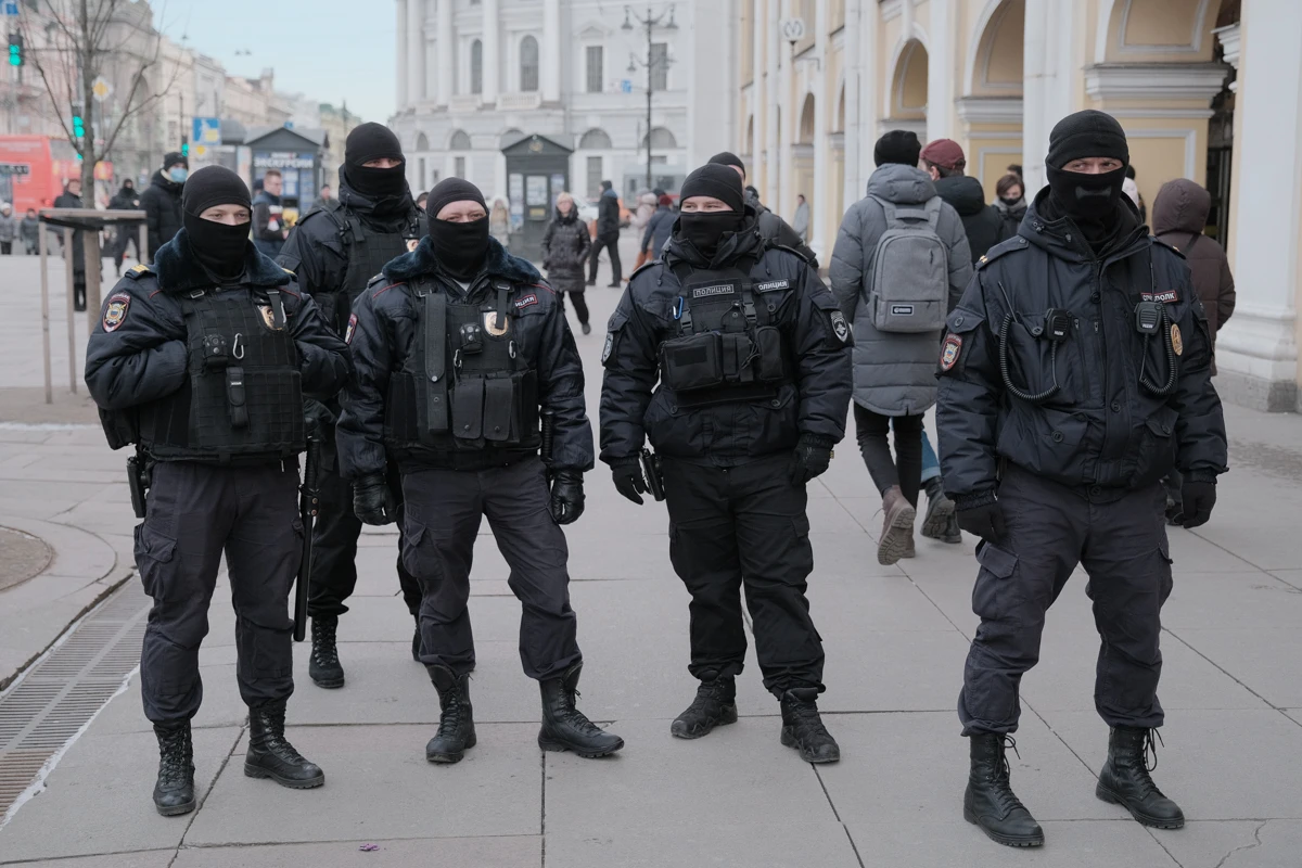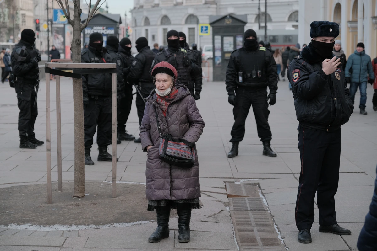 От Гостиного двора противники военной «спецоперации» попытались пройти к Думской, встреив кордон — группа людей повернула обратно и к метро вернулись уже рассредоточившись.