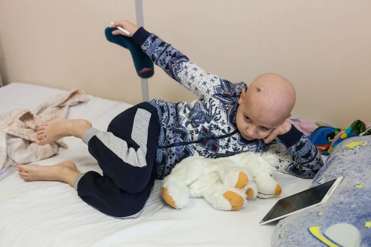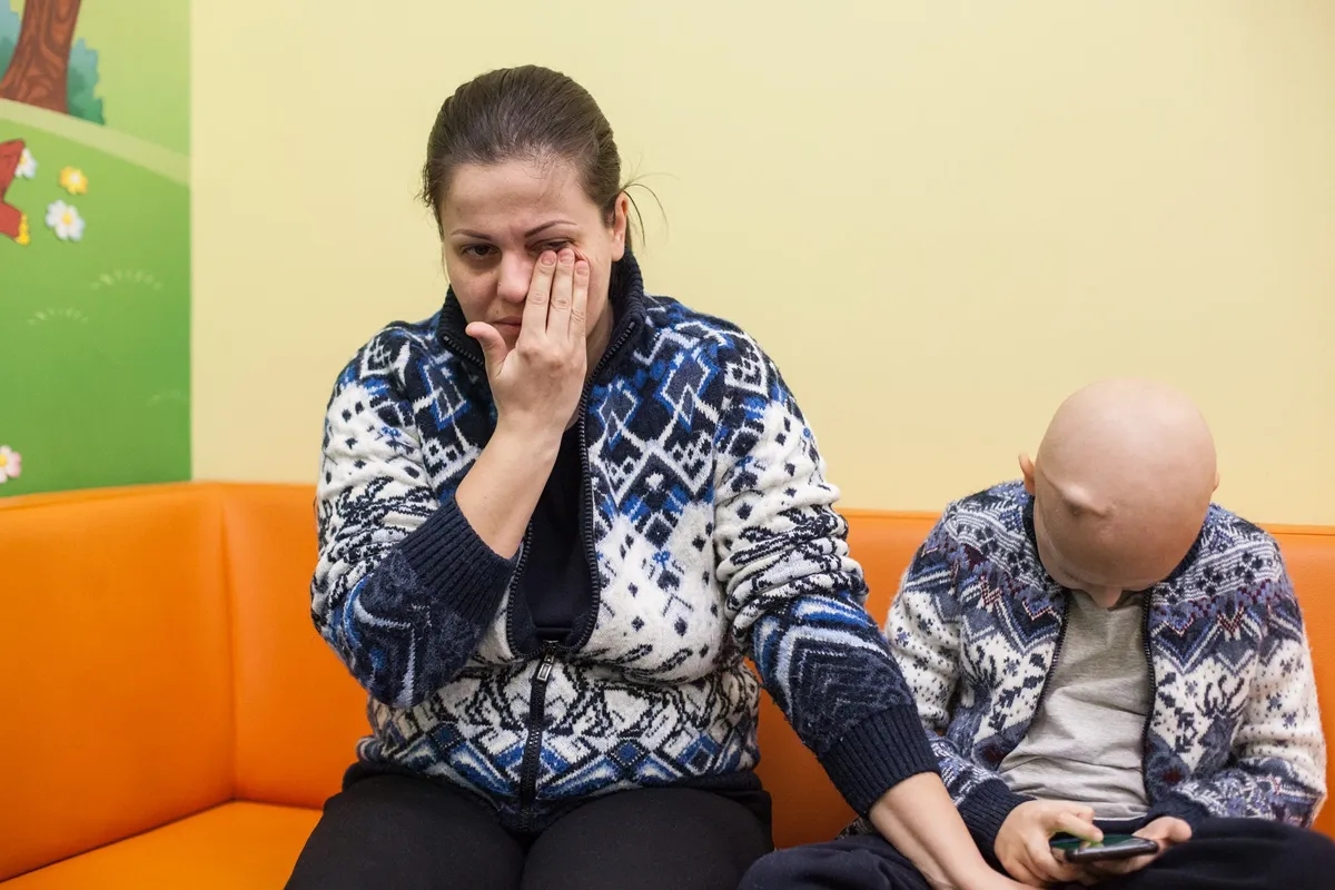 — Я и в Украину вернуться не могу — там «спецоперация», границы закрыты, и в России остаться не могу — у меня здесь никого и ничего нет, — говорит Виктория Михалева, привезшая онкобольного сына на лечение из Херсона в Москву в декабре прошлого года. Ее отвлекает лежащий рядом мальчик, худенький, слабый, совсем без волос, с огромными глазами, резко выделяющимися на осунувшемся лице.