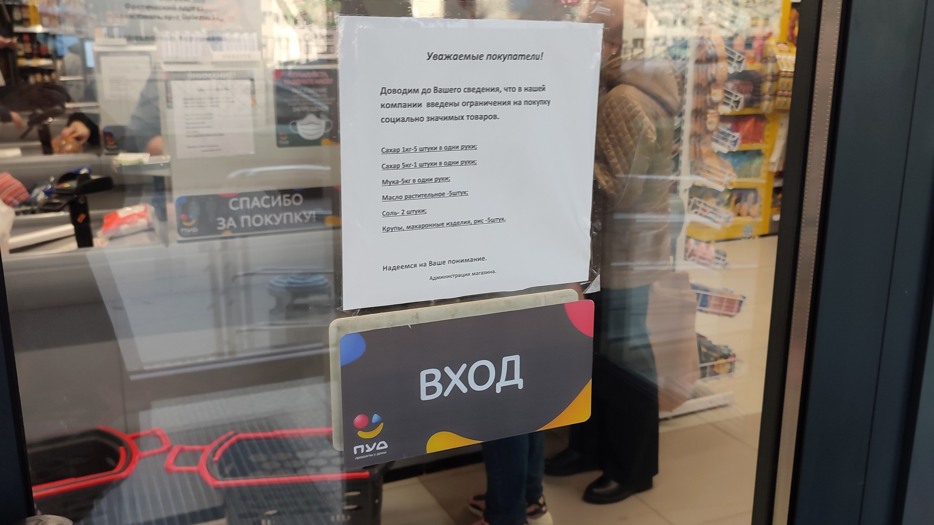 В официальном Telegram-канале российского правительства города сообщается, что «торговые сети установили ограничения по продаже социально значимых товаров. Сделано это не из-за дефицита, а из-за того, что недобросовестные перекупщики выкупают товар и перепродают его с огромной наценкой».