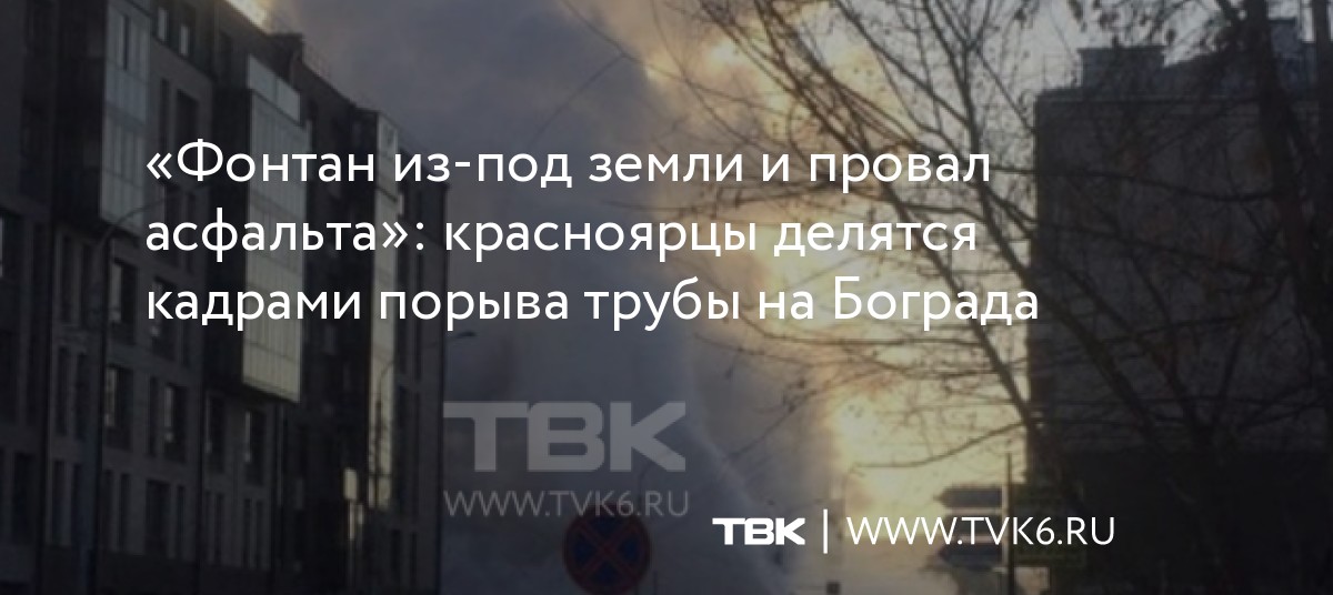 «Фонтан из-под земли и провал асфальта»: красноярцы делятся кадрами порыва трубы на Бограда
