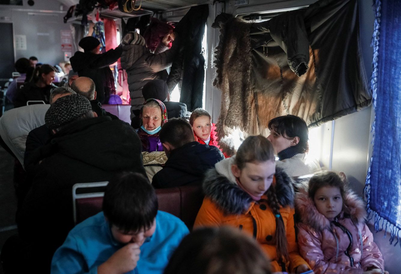 Gleb Garanich / Reuters / Scanpix / LETA Люди в эвакуационном поезде из Киева во Львов