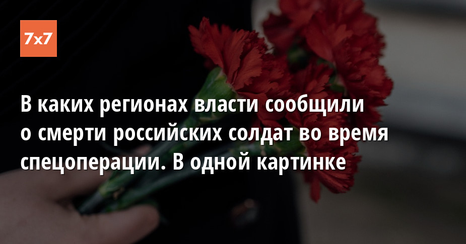 Владимир Путин объявил о начале «специальной военной операции» в Украине 24 февраля. По официальным данным Минобороны России на 2 марта во время военного конфликта погибло 498 российских военнослужащих. После этого власти регионов стали публиковать на официальных порталах и в социальных сетях информацию о погибших солдатах. Где заявили о смерти военных — в одной картинке «7х7».