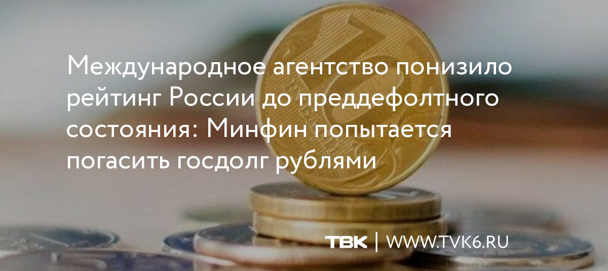 Международное агентство понизило рейтинг России до преддефолтного состояния: Минфин попытается погасить госдолг рублями
