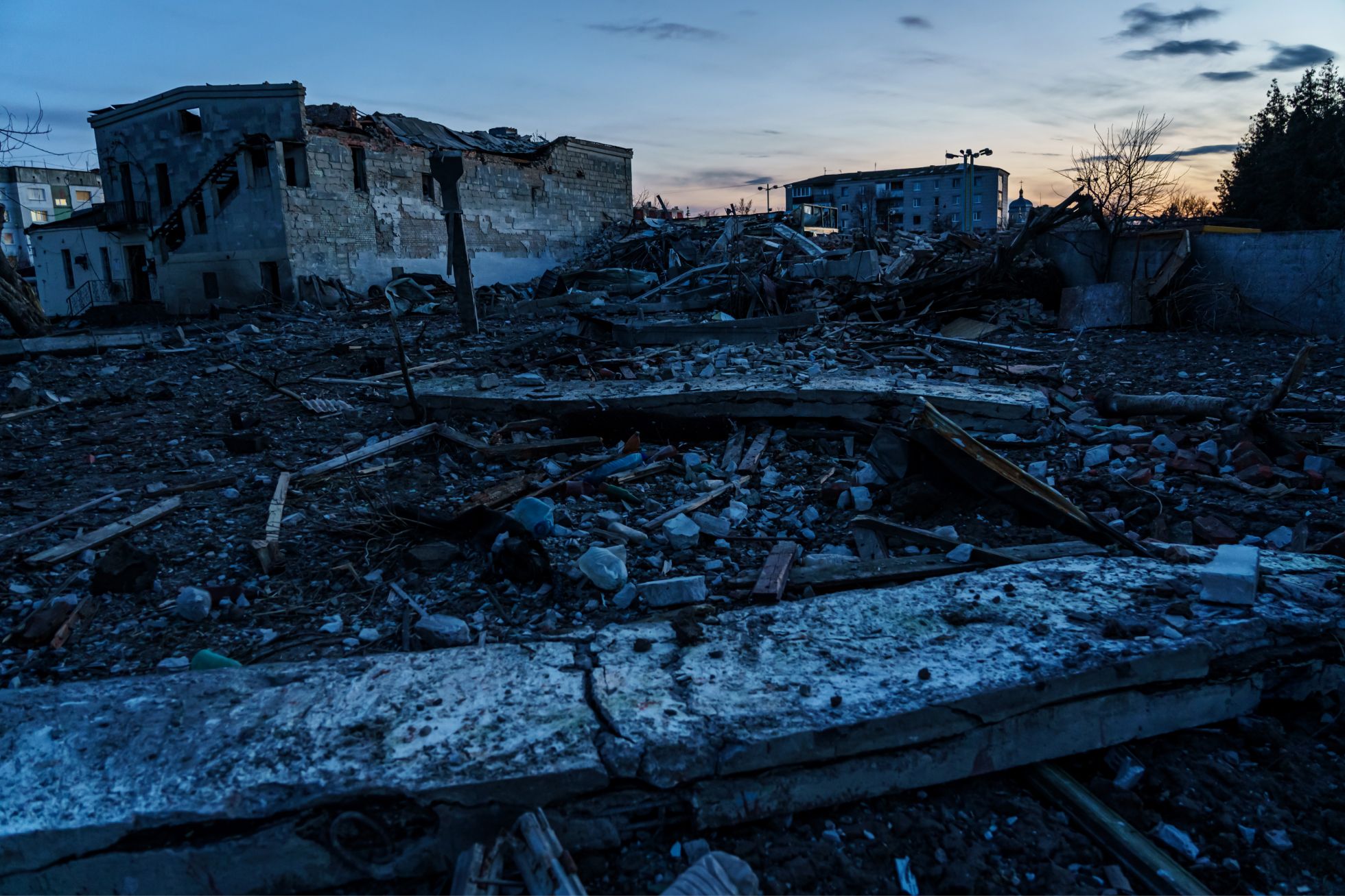 Последствия ракетного обстрела в городе Барышевка, Киевская область